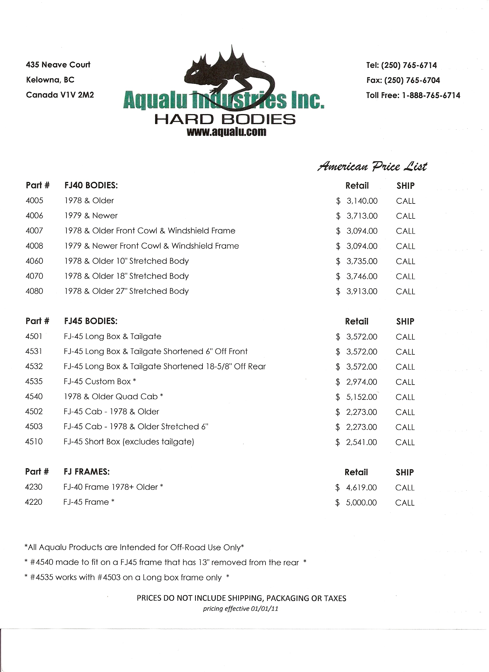 | 4006 | FJ40 Body for 1979 & Newer |